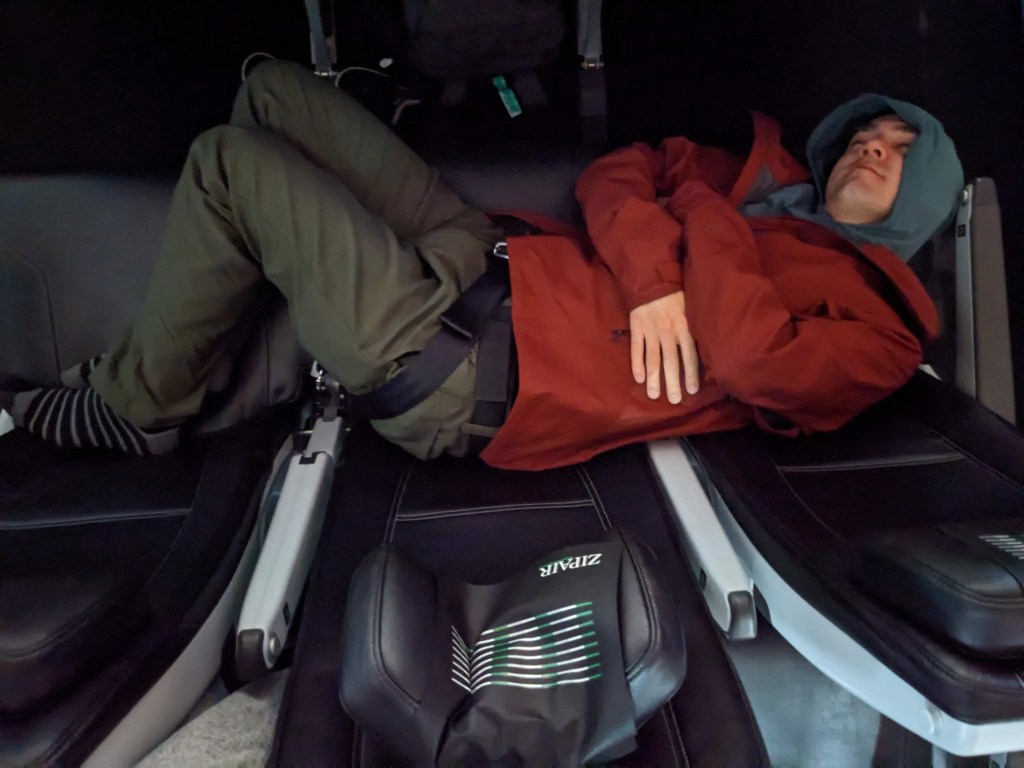 Note to self: eat more next time before an 11 hour flight. The flight was our first time flying the new airline: Zipair. Like many other low-cost airlines, you have to pay for each “add on” like picking your own seat, food (yes even for an 11 hour flight) and more – although inflight wifi is free. Everything said and done, the experience flying Zipair one way to Japan for ~$400 including addons left me content to fly with them again. My plan being tired for the flight worked out great as I ended up sleeping the first half of the flight. I took a break from sleeping to eat meh salmon shio koji. Maybe it was a good thing I didn’t eat too much earlier since hunger is the best condiment after all.