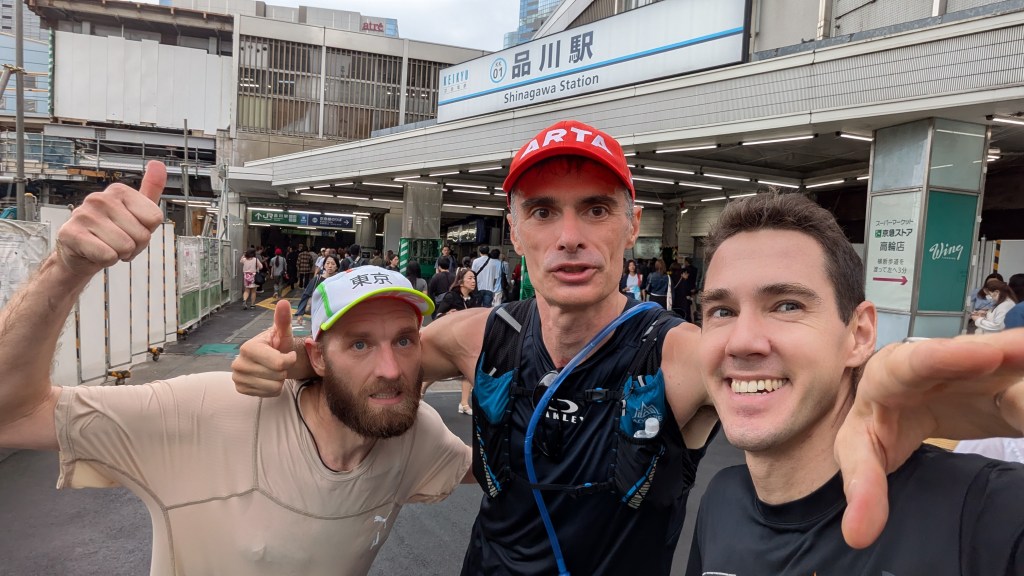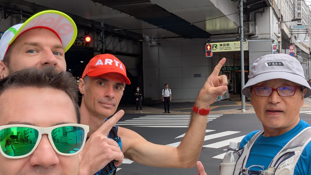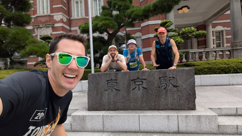 Fortunately we had Chadwick – chief navigator extraordinaire. He took his job seriously and had even researched last year’s winner’s route (which had been the FKT until it was broken this year). Amidst the chaos, Chadwick calmly led us. We were in good hands. Within a few minutes, we got a picture at Tokyo station and continued north.