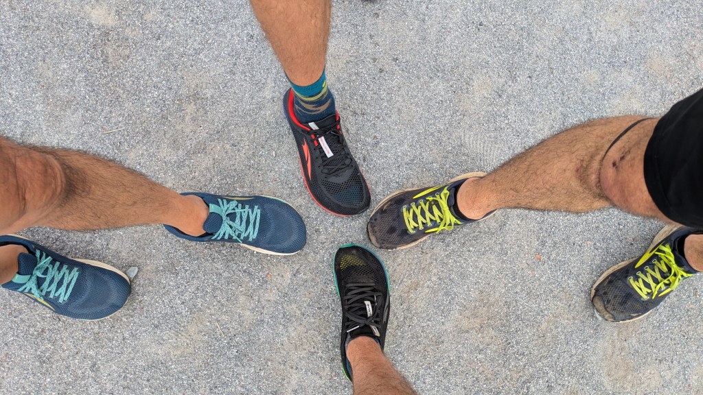 All morning we had been dueling back and forth with the same group of men in purple shirts and black shorts. We seemed to be approaching the event similarly – seriously enough to run moderately fast yet not afraid to rest occasionally. Upon further inspection, it turns out we were at the starting line together too!