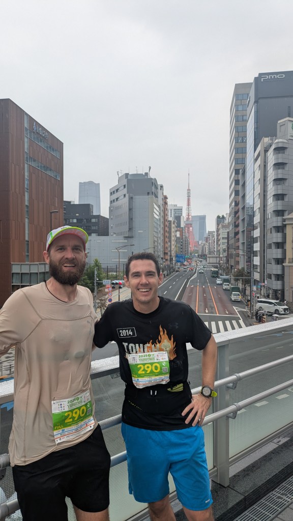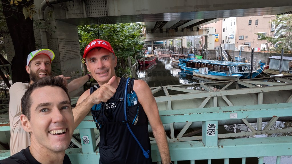 As completing our mission came more and more into focus, the vibes were good. Boom – Tokyo Tower! Cute canal? Heck yes. Feeling good? Let’s speed up! Even the strangers on the sidewalks seemed more cheery and supportive by this point. With thousands of us doing the loop in matching bibs, there was already an instant connection – smiles, cheers and quick waves of encouragement. Very much not a typical Tokyo experience where strangers are largely ignored. As we neared the end, the energy kept building. The camaraderie came in bigger and bigger waves as we pushed through.